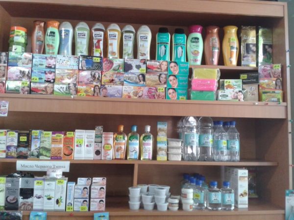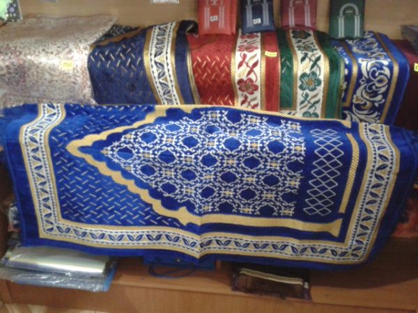 Жайнамаз (коврики для намаза), миски (мусульманские духи), мусульманская косметика (крема, шампуни, мыло, зубные пасты), масло тмина, платки, бони, вода Зам-Зам, хиджама аппарат.