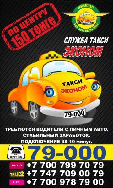 С 3-го мая 2019 года мы запускаем новую службу «Эконом такси», которая предоставит услуги такси по Чундже, по району, курьерские услуги, развозку и т.д. А также приглашаем водителей с личным авто к сотрудничеству и стабильному заработку. Мы предполагаем, что на начальных этапах могут быть трудности со временем подачи и выполнением заказов пока мы не наберем достаточное количество водителей, поэтому заранее приносим свои извинения если возникнут ситуации с долгим ожиданием такси. Как и в любой другой деятельности мастерство приходит с опытом и временем. Наши тарифы мы указали на визитках и приложили к этому объявлению. Проезд по центру будет составлять 150 тг, по окраинам 200 тг. Мы будем рады служить и быть полезными для наших жителей, надеемся на вашу поддержку и на то, что «Эконом такси» действительно будет для вас удобным и экономным. Пусть нам с Вами всегда будет по пути, а мы со словами «бисмиляхи рахмани рахим» начинаем свою службу.