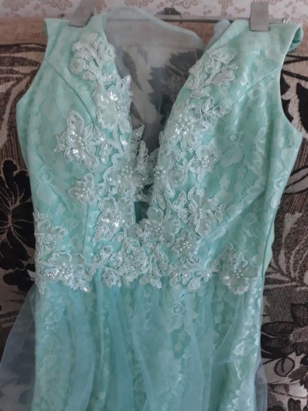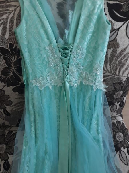 Бирюзовое длинное платье с вырезом на спине, размер стандарт.
