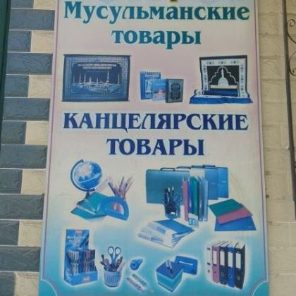 Жайнамаз (коврики для намаза), миски (мусульманские духи), мусульманская косметика (крема, шампуни, мыло, зубные пасты), масло тмина, платки, бони, вода Зам-Зам, хиджама аппарат.