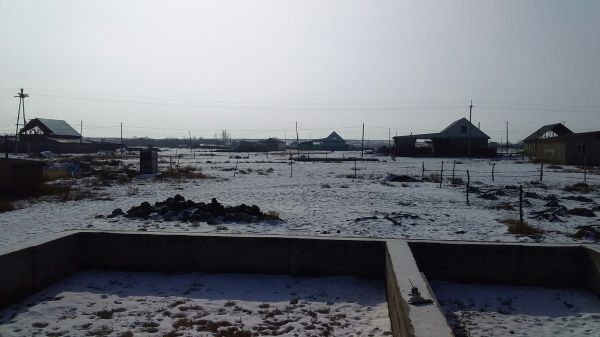 10 соток, с фундаментом 10 на 11, высота фундамента 1 метр, возле школы, гос. акт, документы имеются, варианты - обмен на машину и скот.